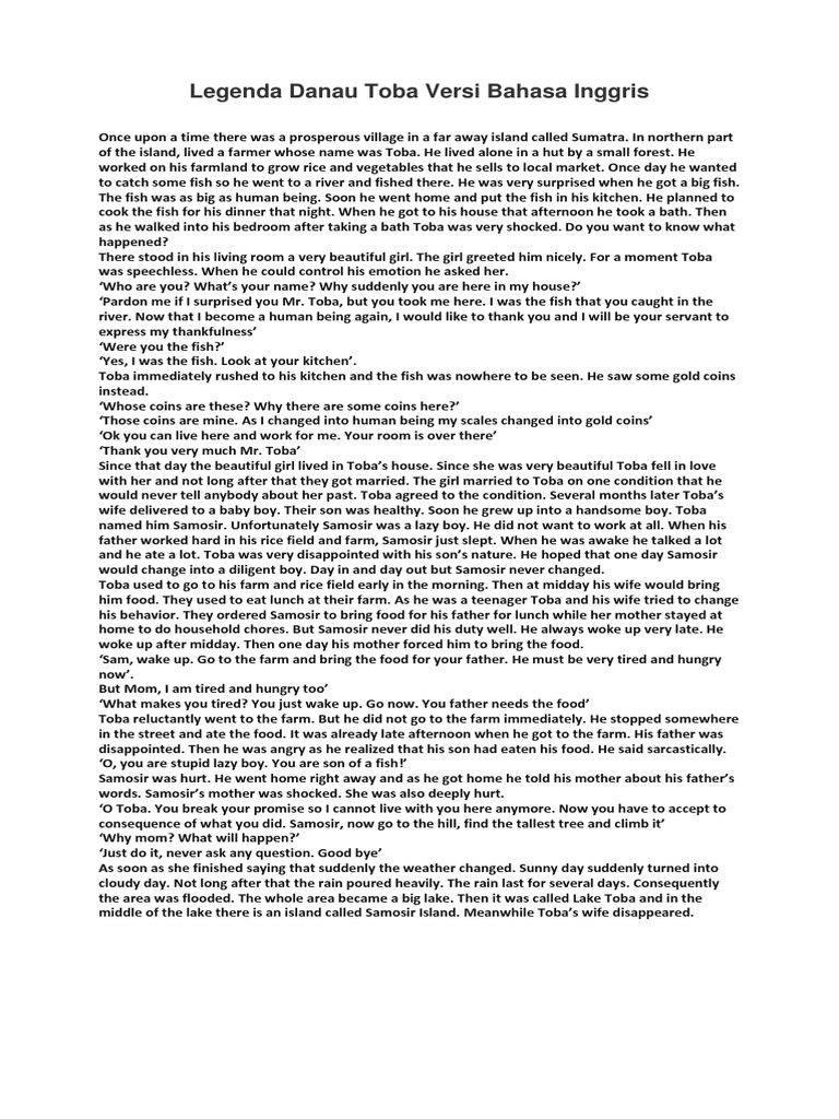 Every day he worked on the livestock and fishing tirelessly. And that s because i have a business trip from jakarta to medan. Related posts to cerita danau toba pake bahasa inggris cerita danau toba pake bahasa inggris 2019 08 12t12 19 00 07 00 rating. Danau toba dalam bahasa inggris.