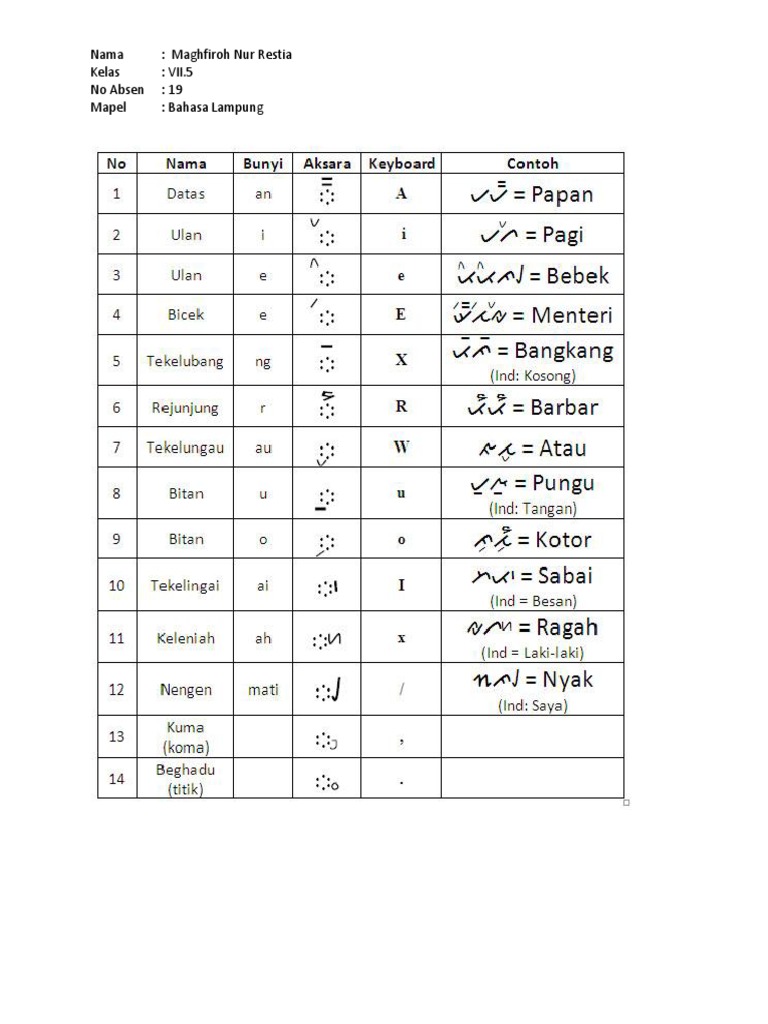 Bumi aksara 2002 h. Manfaat taman wisata danau ranau dalam. Aksara lampung adalah bentuk tulisan yang digunakan orang lampung pada zaman dahulu sebagai alat komunikasi. Danau terluas kedua di pulau sumatera ini akan memberikan pengalaman yang tak terlupakan bagi anda.