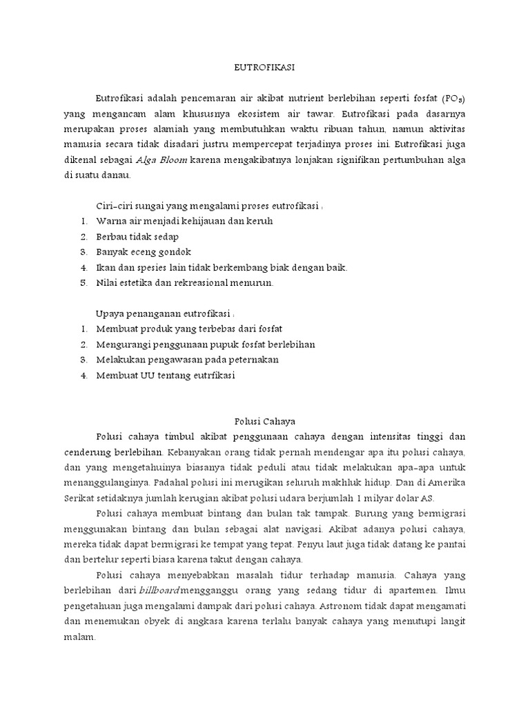Eutrofikasi danau akibat kegiatan manusia. Kegiatan penjagaan lingkungan juga menghindarkan kawasan dari efek gangguan seperti eutrofikasi. Kerugian ini akibat kematian ikan sekitar 13 413 ton dari 6 286 petak keramba jaring apung kja dan menyebabkan 3 143 tenaga. Suksesi danau akibat eutrofkasi. Ini berpotensi mengakibatkan penurunan kualitas air yaitu dengan terjadinya eutrofikasi dan air anoxic seperti yang dilaporkan di danau cirata purwakarta jawa barat.