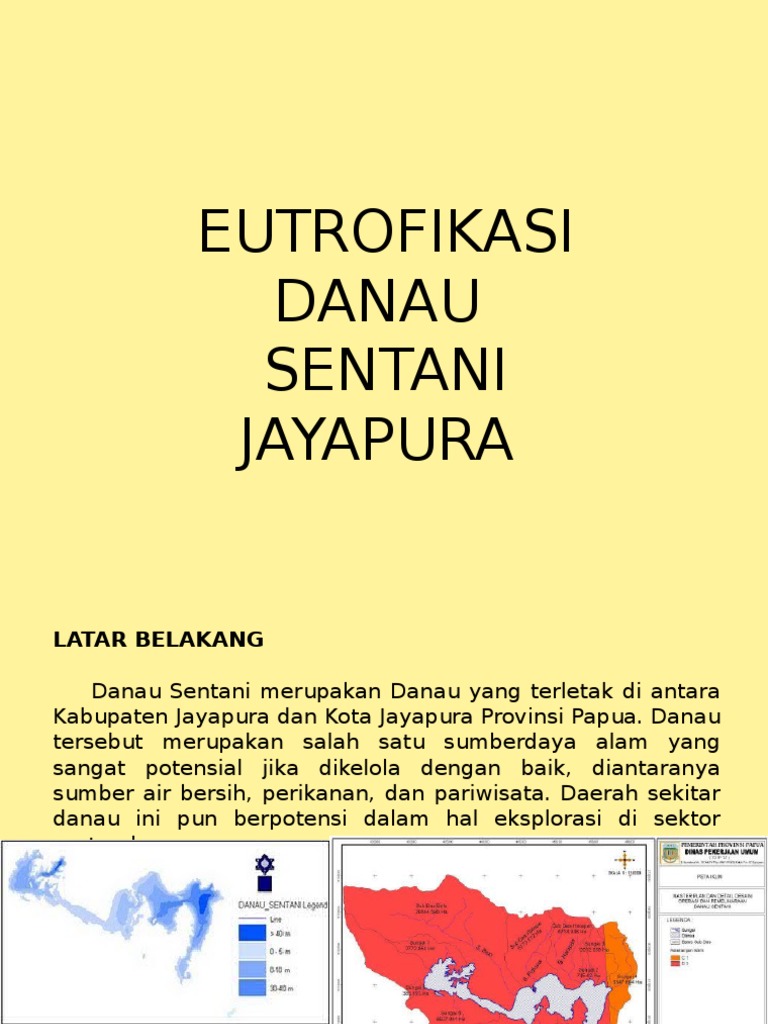Sungai dan juga danau merupakan badan air yang berfungsi sebagai sumber daya alam untuk kehidupan manusia. Akibatnya keberlanjutan suatu lingkungan hidup yang didalamnya. Pada umumnya manusia sangat mengagumi keindahan pemandangan suatu danau dengan panorama yang melarbelakanginya. Namun sungai dan juga ekosistem lainnya juga bisa mengalami yang namanya eutrofikasi.