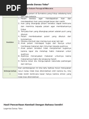 Danau toba danau toba merupakan letak letusan gunung berapi super masif yang memiliki kekuatan vei 8 atau sekitar 69 000 77 000 tahun lalu yang mengakibatkan iklim global. Cerita sejarah singkat beserta strukturnya. Mengembangkan teks cerpen kisah seorang keledai. Asal usul danau toba seperti yang kita ketahui danau toba adalah danau vulkanik dimana di tengah tengah danau ini terdapat sebuah pulau yang disebut pulau samosir.